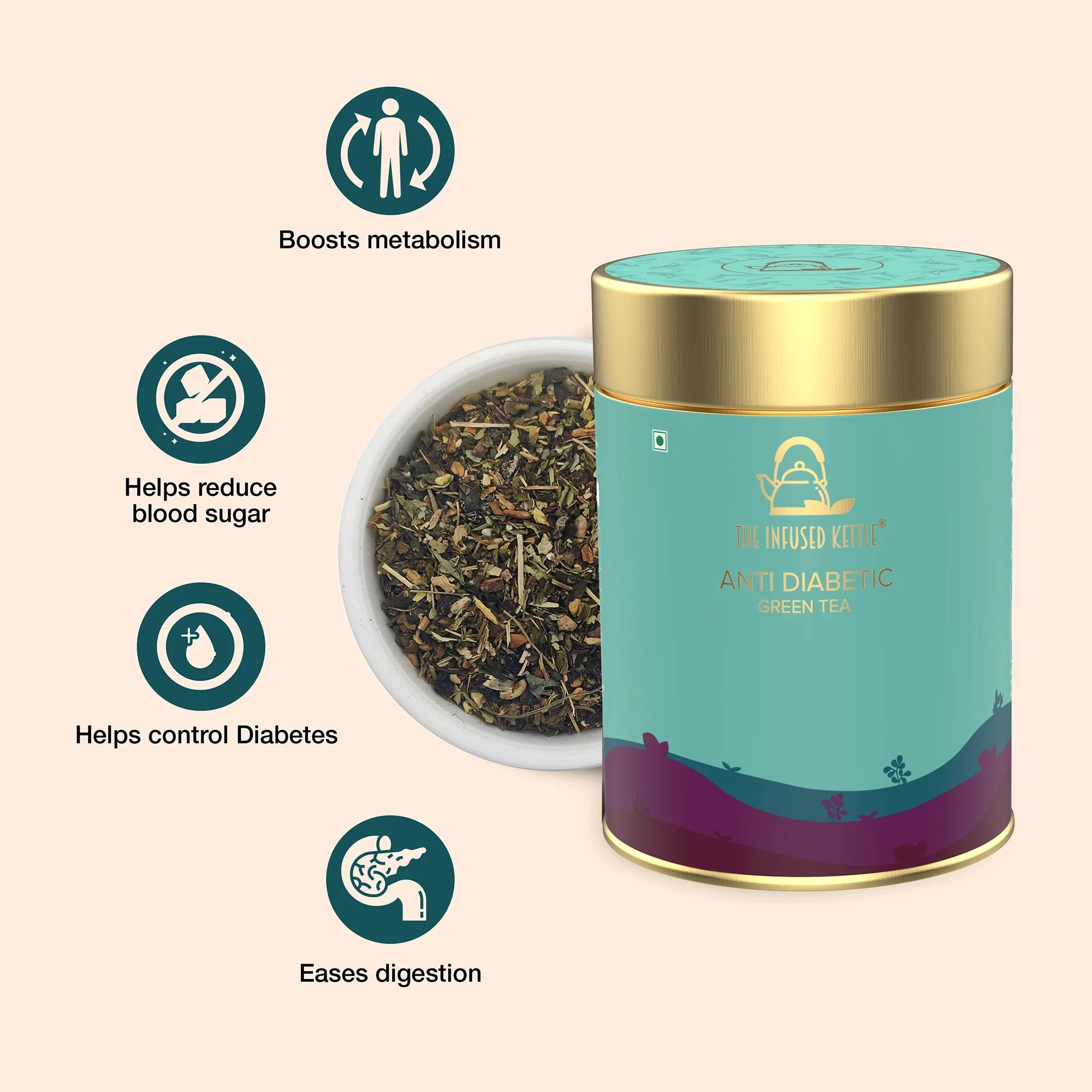 Our Anti Diabetic Tea combines carefully selected herbs known to support healthy blood sugar levels, with a mild, earthy flavor. Crafted to be enjoyed warm.