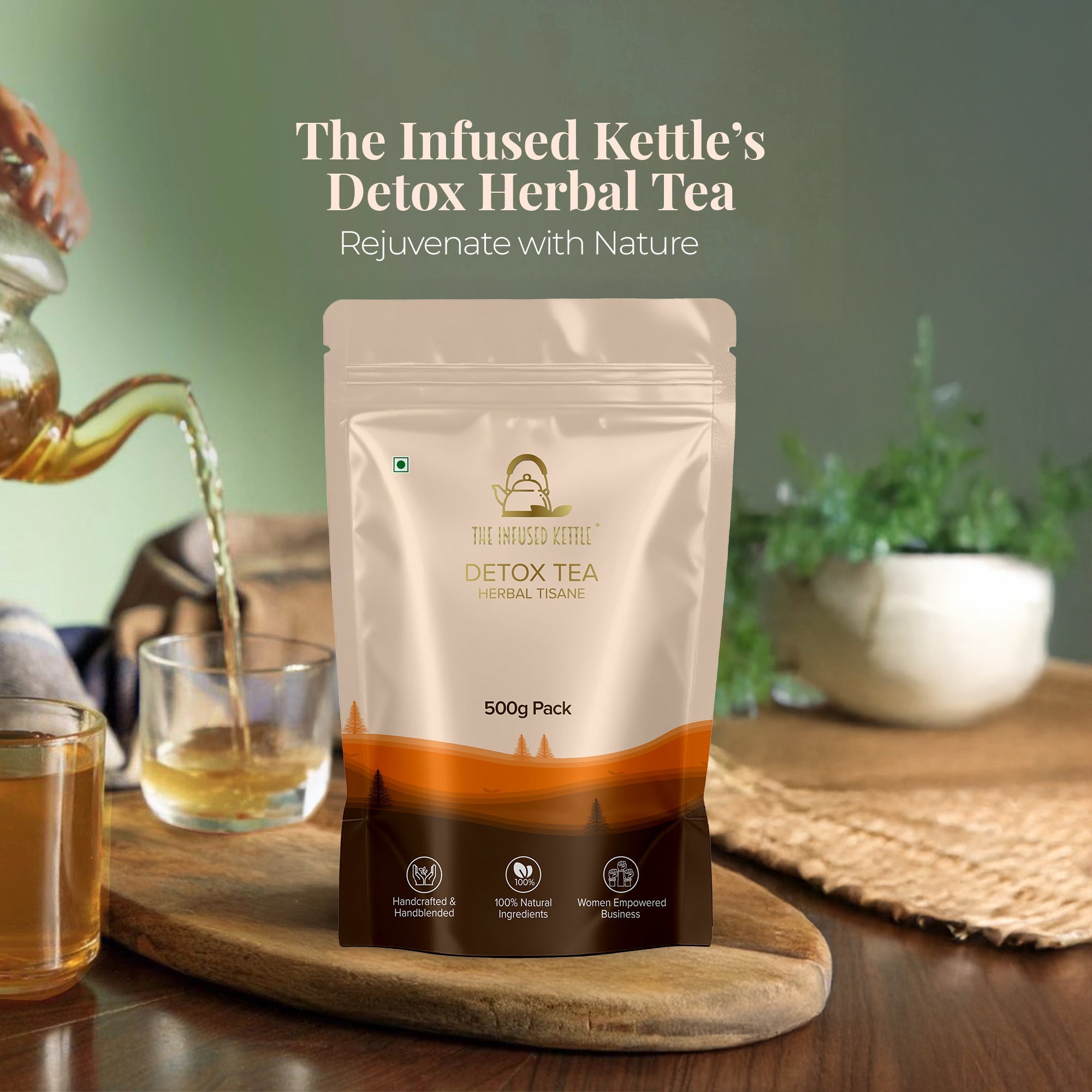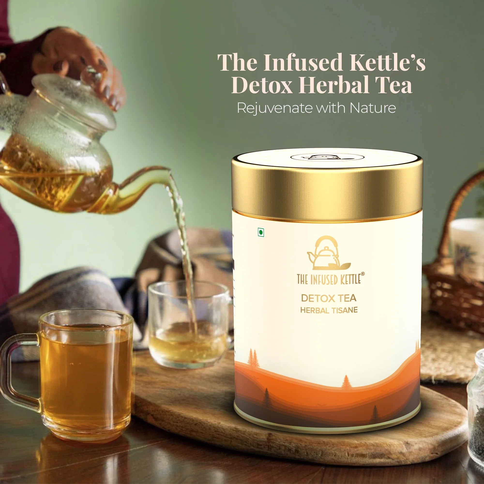 Unwind with The Infused Kettle’s Detox Green Tea—a soothing blend that enhances natural detoxification effortlessly, 1 cup brewed at a time.