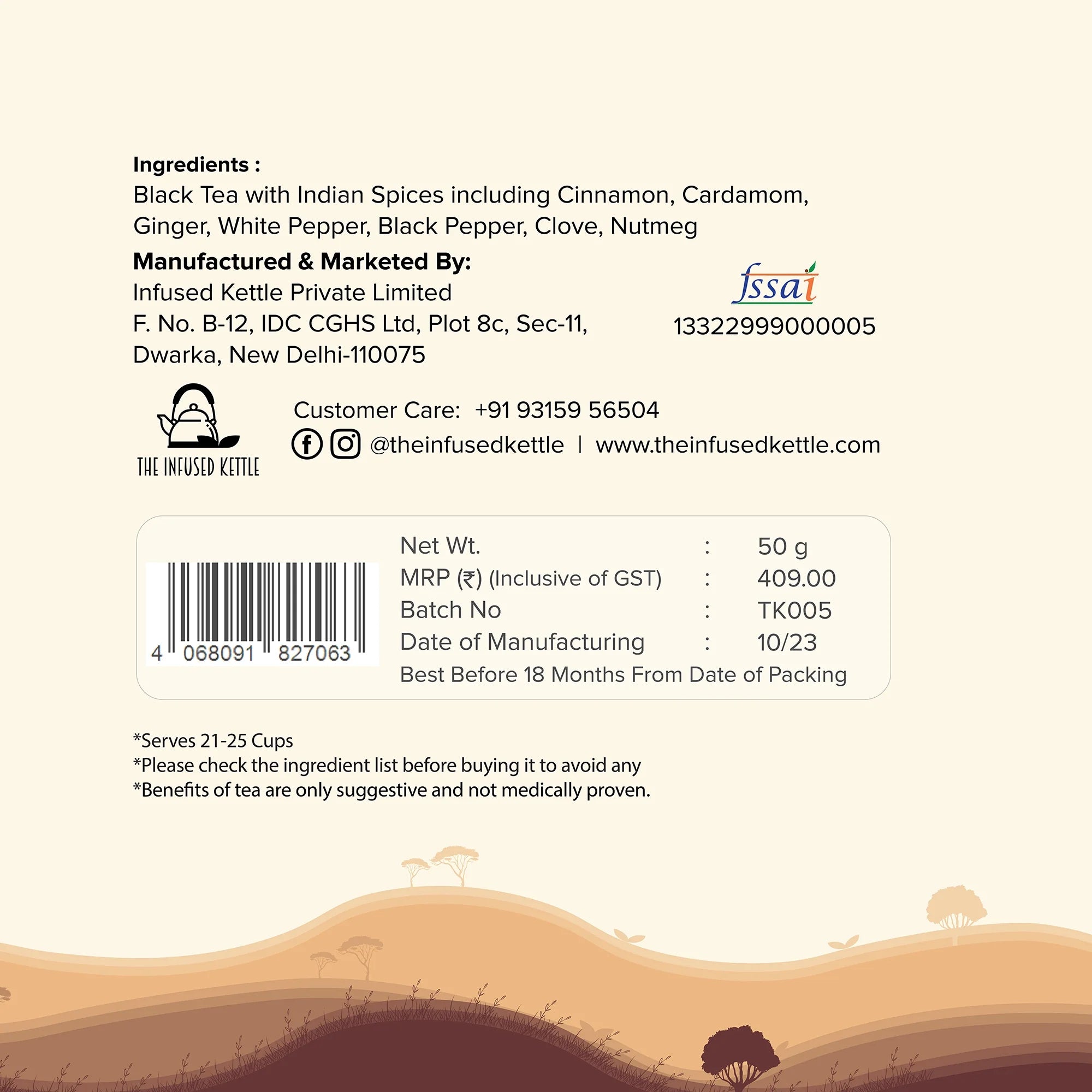 Our Masala tea contains black tea, which naturally contains caffeine for a refreshing and energizing experience.