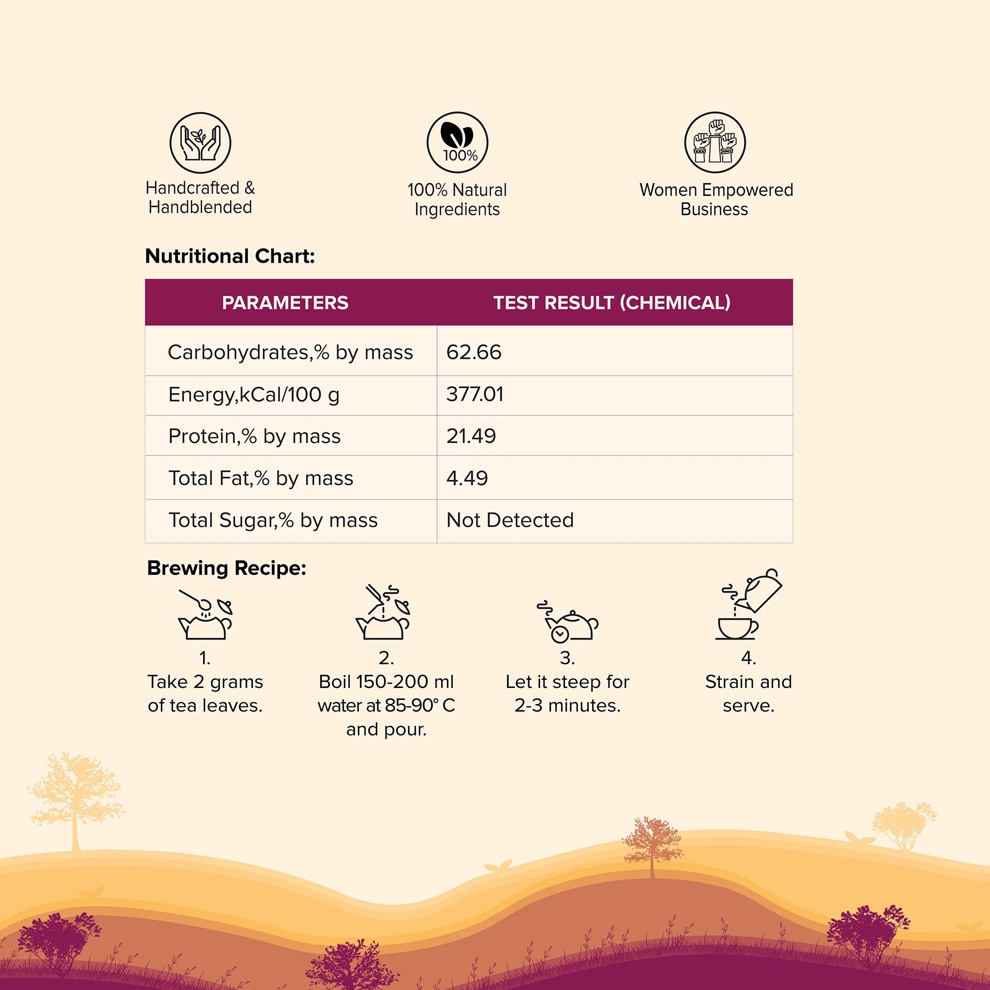 Boil water, steep the tea blend for 3-4 minutes, and enjoy. You can add honey or sugar if desired.