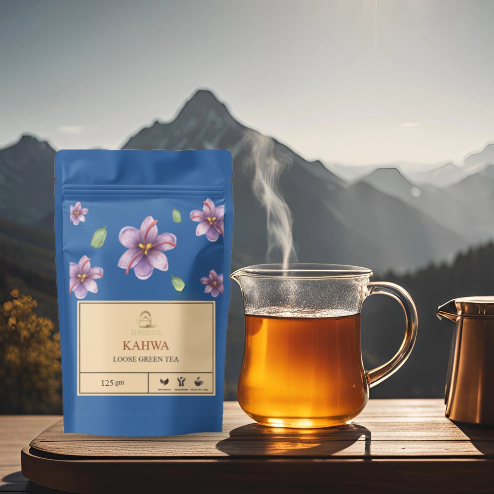 Experience the delicate, aromatic blend of our Kahwa Tea. This luxurious tea offers a soothing warmth with a hint of sweetness and spice—best enjoyed hot for a rejuvenating, comforting treat.