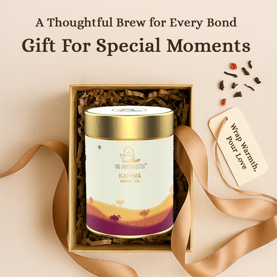 Kahwa Tea may aid digestion, boost immunity, and provide a calming effect due to its blend of spices and green tea.