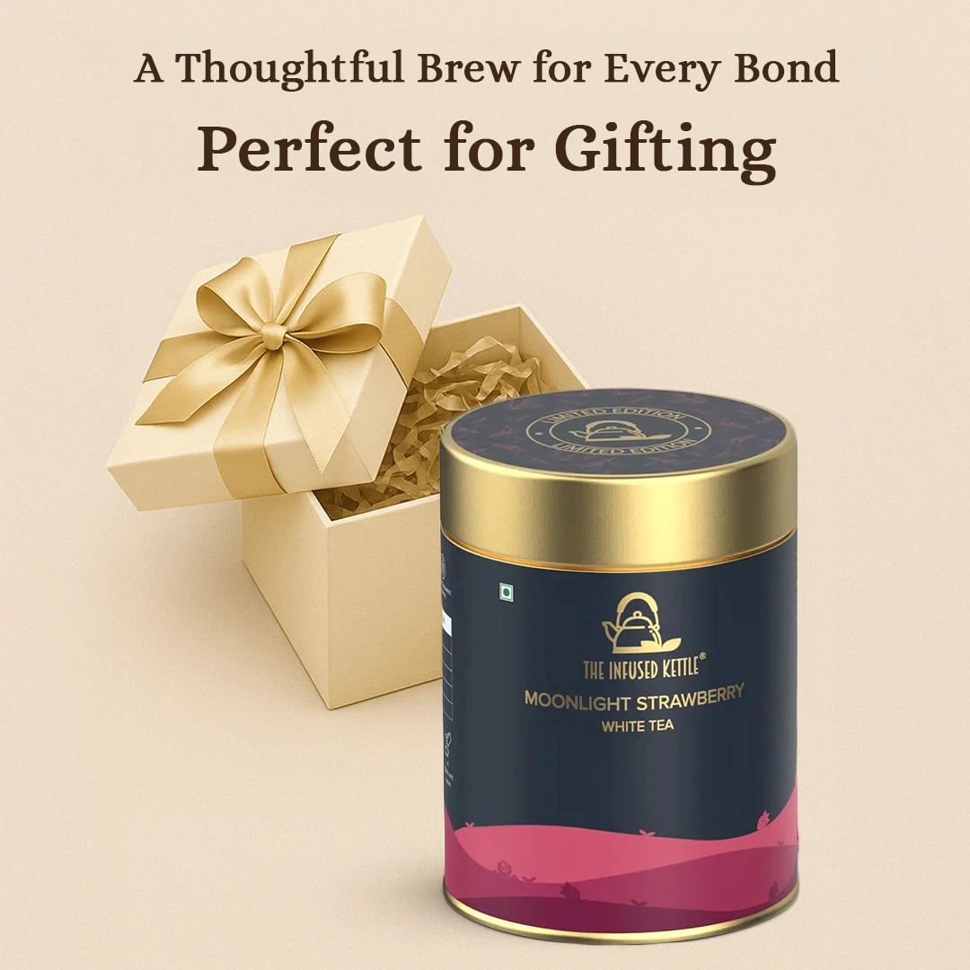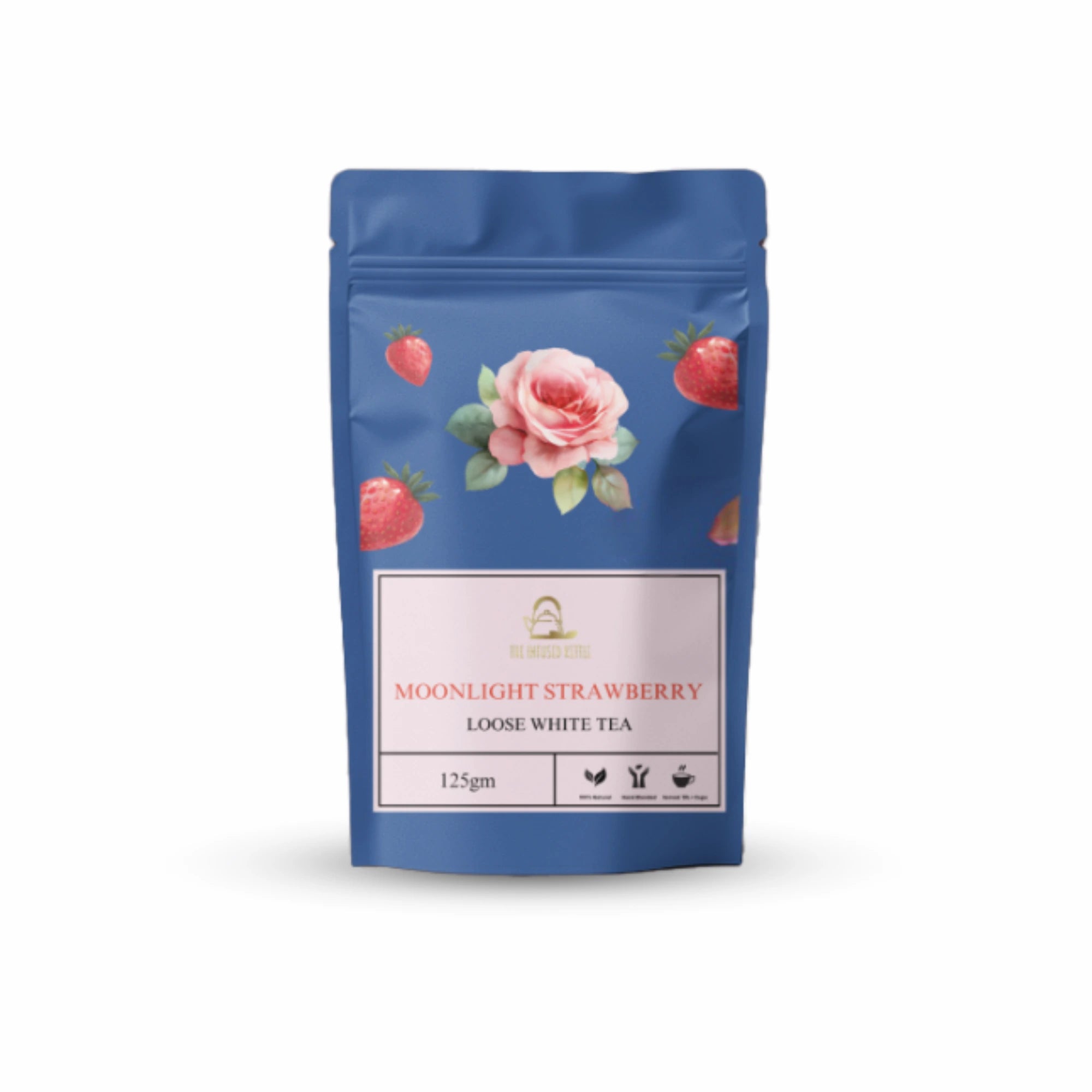Indulge in Moonlight Strawberry White Tea, a potent blend with powerful antioxidants for healthy skin, improved mood, and enhanced concentration.