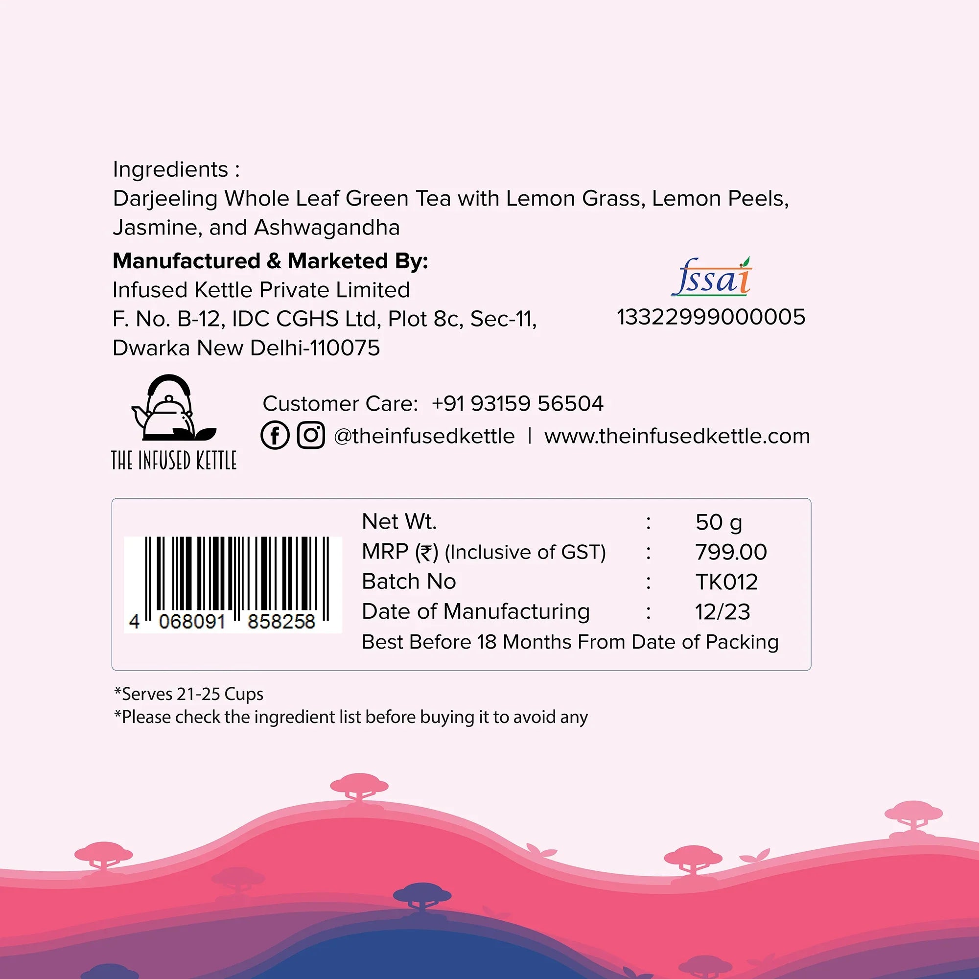 Our tea blends homegrown ingredients for quality and freshness. The unique mix of green tea, lemongrass, lemon peels, jasmine, and ashwagandha promotes relaxation and stress relief effectively.