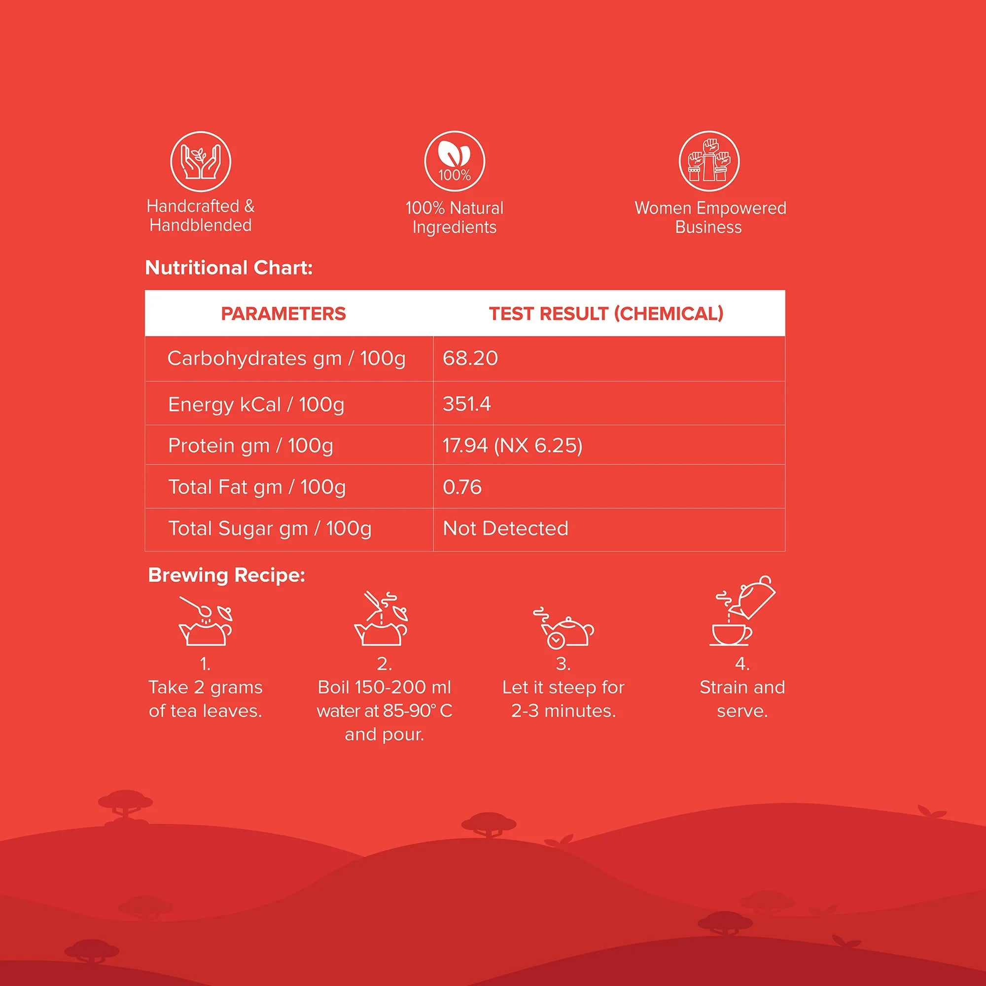 For the best experience, steep 2.5gm tea in hot water (150-200ml) for five to seven minutes. Adjust brewing time to suit your taste.
